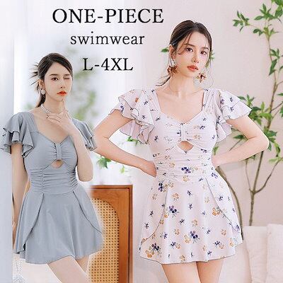 水着 レディース ワンピース 体型カバー水着 フリル袖 大きいサイズ ぽっちゃり かわいい おしゃれ フリル袖 ハイウエスト 露出控えめ カットアウト カッティング 二の腕 お尻 太もも お腹 カバー