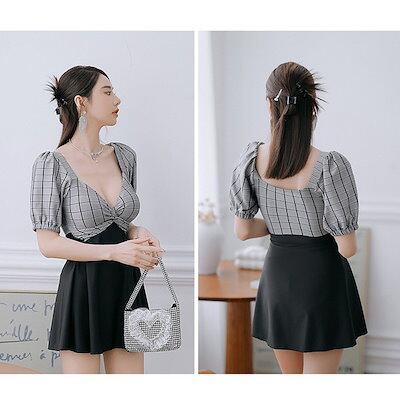 水着 レディース ワンピース 体型カバー水着 大きいサイズ ぽっちゃり かわいい おしゃれ フリル 袖 ハイウエスト 露出控えめ カットアウト カッティング 二の腕 お尻 太もも お腹 カバーアップ
