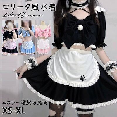 水着 レディース ロリータ風 メイド水着 リボン かわいい フリル オフショルダー リボン 水着 肩出し 着せ セクシー 無地 コスプレ 衣装 撮影 写真用 映える 温泉 プール ビーチ ホワイト