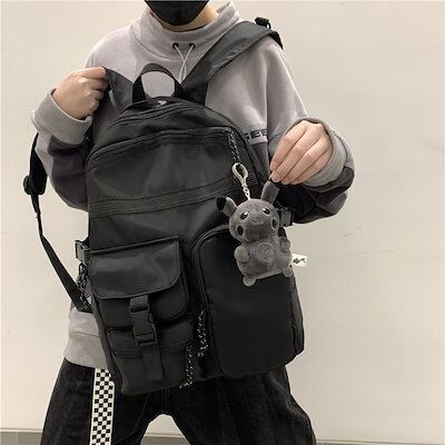 ブラックパソコンバッグ防水スクールバッグ耐摩耗通学リュック韓国ファッションカジュアルズックバッグショルダーバッグレディース買い上げの方にマペットチャームをプレゼント! 母の日 バックパック