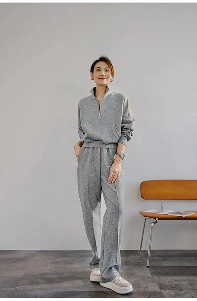 韓国ファッション 2025新作 運動セット涼しく楽ちんセット人気新作スウェットセットアップレディース春服ファッション長袖tシャツカジュアルワイドパンツ上下二点可愛い立ち襟福袋