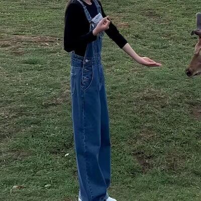 2025年春 カジュアル優しげデザインで着やせレトロなデニム サロペット コーデ完成 サロペット ワイドパンツ 韓国ファッション デニム