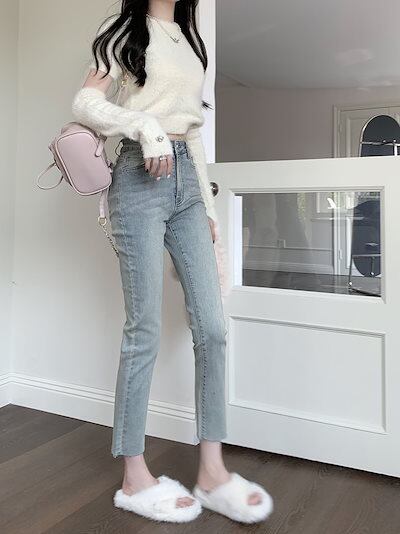 脚長効果!スキニーデニムパンツ 2025春夏 カジュアル 水洗ストレッチタイト 9分小足ペンシルパンツ ダメージ ロングパンツ レディース ワイドパンツ
