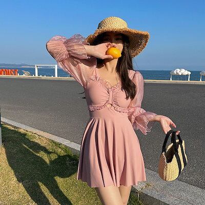 水着 2025 大きいサイズ 水着 レディース 保守的 スカート ベリーシェード ワンピース 長袖 スパ 韓国ファッション