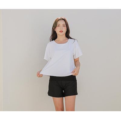 SEA ANGEL【2025新作】 体型カバー ママ 水着 2点セット ラッシュガード 夏 トップス 首元バックリボン スポーツブラ パッド付き ショートパンツ 透け防止 エスニック
