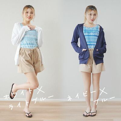SEA ANGEL【2025新作】 UVカット パーカー 冷感 レディース 長袖 水着 体型カバー 4点セット ラッシュガード UV アウター 4タイプ 大きいサイズ 日焼け防止 水陸両用 トップス 薄手 吸湿 速乾
