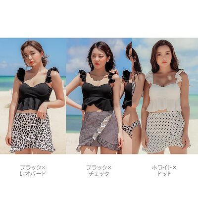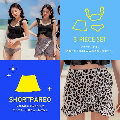 SEA ANGEL【2025新作】水着 レディース 3点セット 体型カバー セパレート トップス ボトムス ショートパレオ 上下 パッド付き UVカット フリル トレンド ママ水着