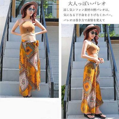 ビキニ レディース パレオ付き3点セット水着 ハイウエスト ショートパンツ リゾート クロスバンド 水着 エスニック柄