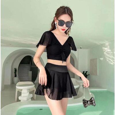 水着 レディース 体型カバー 可愛い フリル 小胸 水着 韓国 水着 タンキニ 水着 タンキニ 露出控えめ セパレート 上下セット スカート