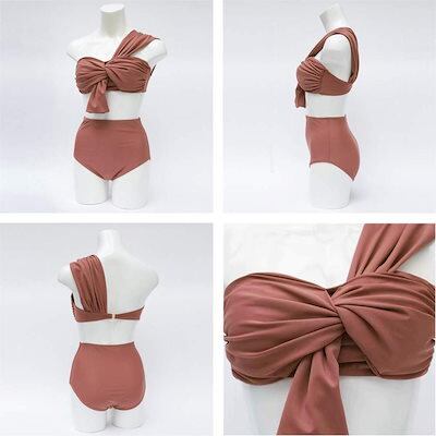 ワンショルダー 水着 2点セット セパレート 水着 レディース 体型カバー バンドゥ ビキニ ハイウエスト