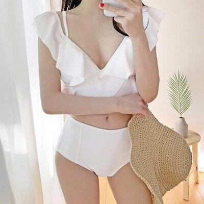 フリル水着 レディース 上下セット 体型カバー ビキニ セクシー 水着 無地 セパレート水着 フレアトップス フリルビキニ