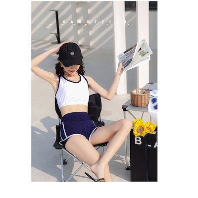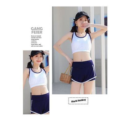 ビキニ水着レディース 夏 ビキニ3点セット水着 体型カバー 韓国風 日焼け止め半袖Tシャツ ショットパンツ 水着 小胸バンドゥビキニ 水着 セパレート 40代
