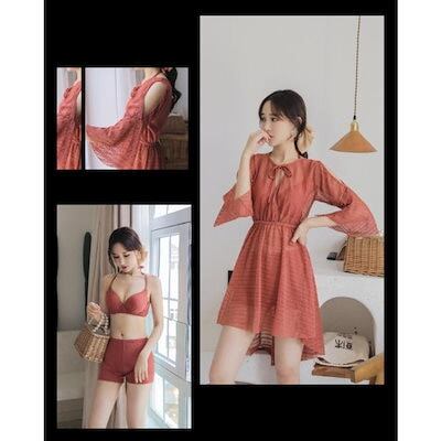 水着 レディース 3点セット 夏 小胸 バンドゥ 水着セット ビキニ パレオ 大きいサイズ リゾート パッド付き 韓国風 体型カバー 日焼け防止 20代 30代 40代 50代