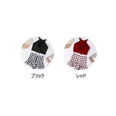 水着 レディース 体型カバー 水着2点セット ビキニ セパレート水着 チェック柄スカート 小胸バンドゥ 40代 オシャレ韓国風 スポーツ スイムウェア ママ水着