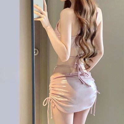 激安水着即納 水着 レディース 体型カバー 可愛い?2/3点セット セクシー 新作ホルター水着レディースラインストーンセクシーツーピーススプリット水着