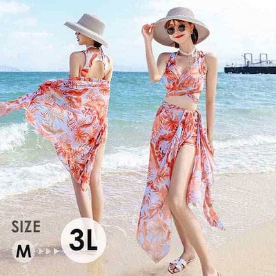 3点セット タンキニ水着 パレオ付き レディース 水着 体型カバー 大きいサイズ 2L 3L セクシー ビキニ 水着 エロい 韓国 着痩せ 水着 個性 ワイヤー入り