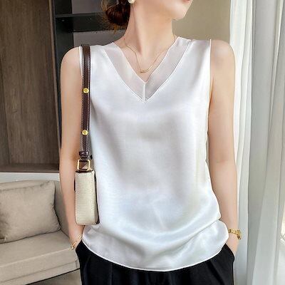 上品 夏 キャミソール レディースセクシーメッシュVネック 着痩せ ノースリーブ Tシャツ 韓国ファッション アイスシルク 百掛け アンダーウェア 冷感 キャミソール インナー大きいサイズ トップス