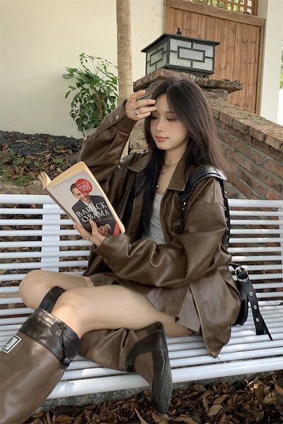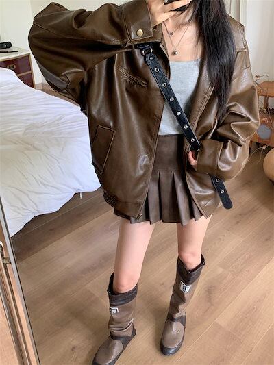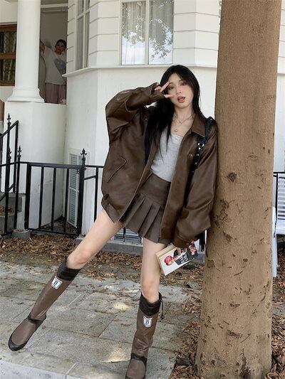 2024 秋冬 長袖 かわいい 2点セット ショート アウター ブラック 羽織り合成バイカラーカジュアル きれいめ 女っぽ きれいめ ファッション 色っぽ 女っぽカジュアルきれいめ大人