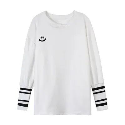【期間限定激安販売】重ね着インナーコットントップルーズ韓国風刺繍スマイリー長袖ボトミングシャツ[2タイプ]