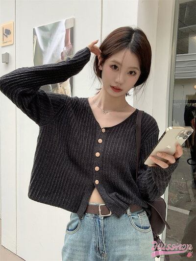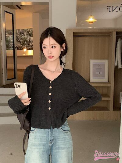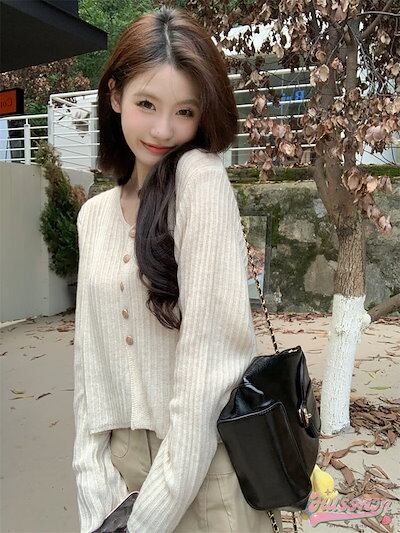 Vネック長袖セーター レディース 長袖 アウターカーディガン 韓国ファッション 可愛い シンプル 大人