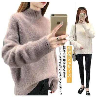 全6色5サイズ!モヘアタッチニットセーターレディースニットトップスニットセータープルオーバータートルニットニットソー無地ハイネッ