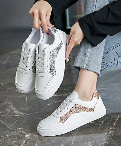ローカットスニーカー スパンコール靴美脚 ホワイト くつ旅行 軽量疲れにくい靴白 運動スニーカー配色