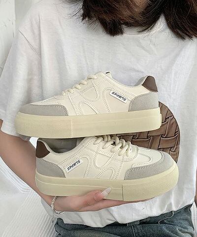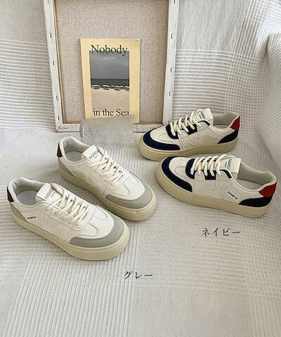 厚底スニーカー レースアップローカット靴 バイカラー靴 人気 疲れないシューズ ボリュームソール靴