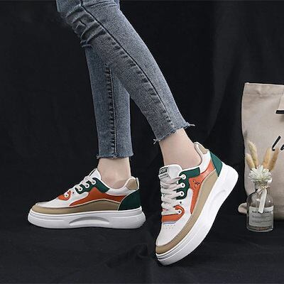ローカット 配色スニーカーレディース 美脚 ローヒール韓国春夏 レトロ 紐スニーカー 通勤通学 シューズ