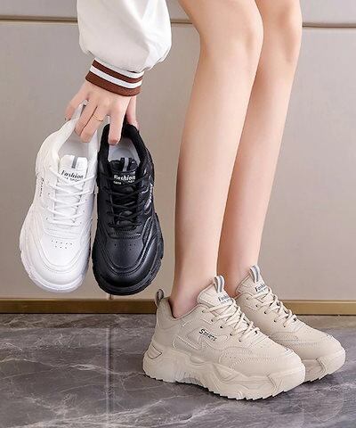 厚底ダッドスニーカー レースアップ 美脚 ローカットシューズ 疲れないスニーカー 厚底スニーカー脚長
