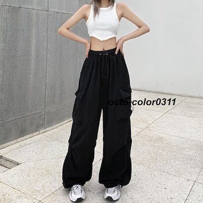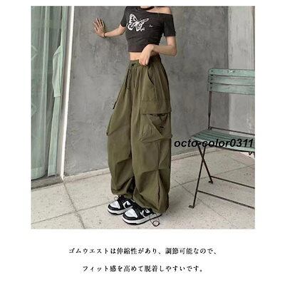 今月のみ ワイド レディース ロングパンツ 薄手 春 ズボン カーゴパンツ 夏 秋 カジュアル パンツ ワイド 無地 ウエストゴム ダンス用 動きやすい 女性