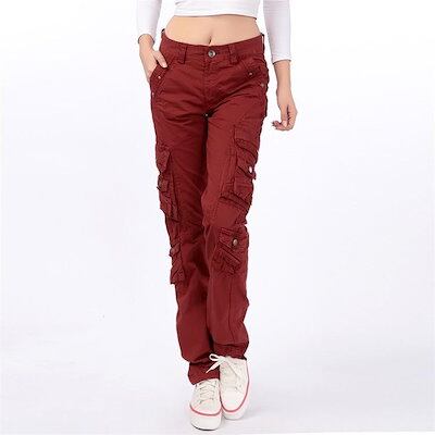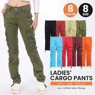 レディース カーゴパンツ ミリタリー 多ポケット ダンス スリム アウトドア 作業着 コットン 綿 ボトムス 裾上げ カーキ ブラック ベージュ【takumu】