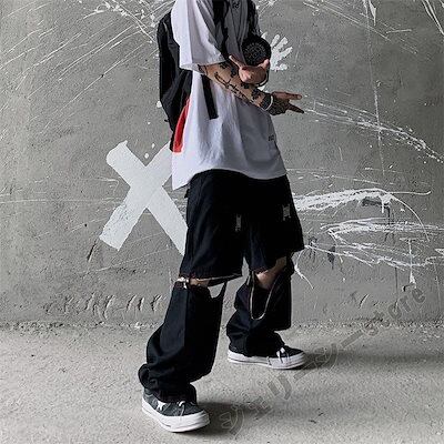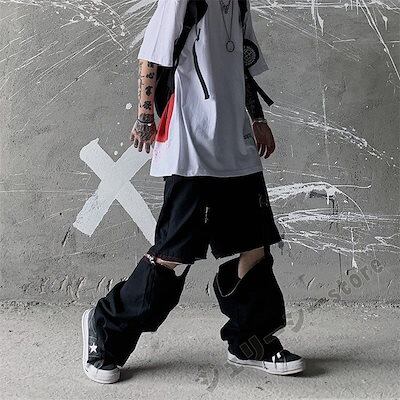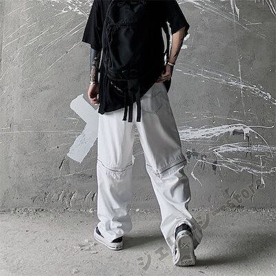 先取りロングパンツ ガウチョパンツ スウエットパンツ ホワイト ブラック ストレート メンズ レディース