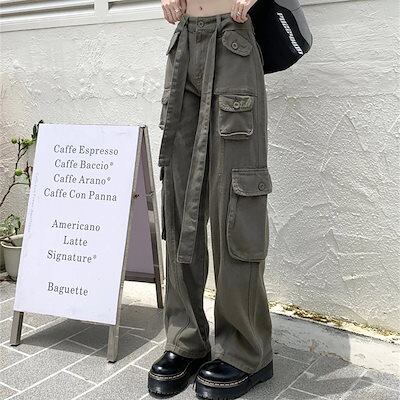 カーゴパンツ 着痩せ ストレート ジョガーパンツ デニムパンツ レトロ ゆったり 長ズボン 美脚 パンツ レディース服 韓国ファッション