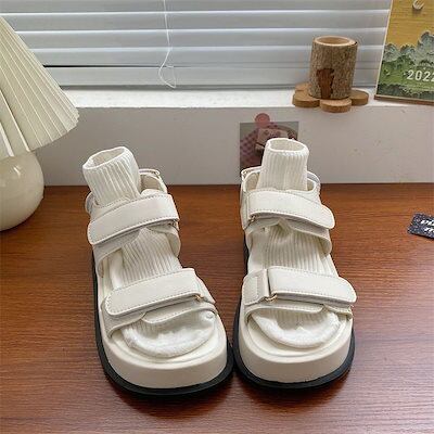厚底サンダル2025新作カジュアル韓国マジック厚底サンダルスニーカー夏の黒婦人靴 夏リボンサンダル