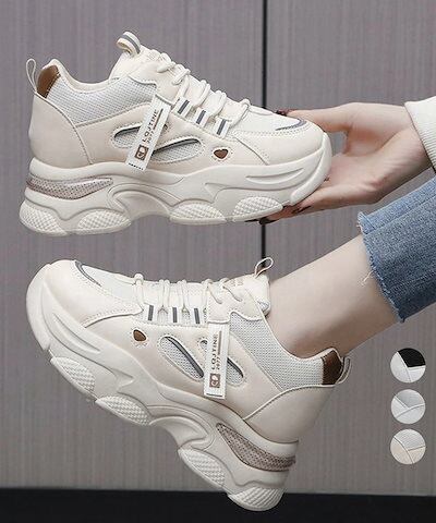 新品更新 22.5cm(1)〜24.5cm(5)3色ブラック ホワイト アイボリー スニーカー シューズ 厚底 OL通勤 通学 ウォーキング 黒 くつ 韓国ファッション靴 インスタ 撮影 アイド
