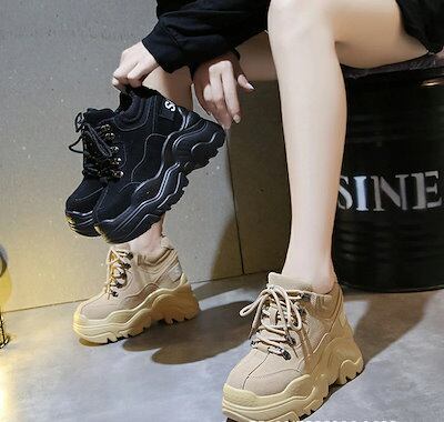 新?入荷続々 厚底 スニーカー レディース ダッドスニーカー 6cmヒール 22.5cm 23.5cm 23cm 24cm 24.5cm 厚底 ローカット レースアップ ブラック 黒 ベージュ スボー