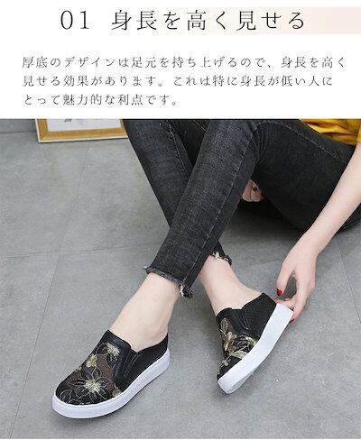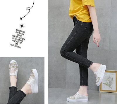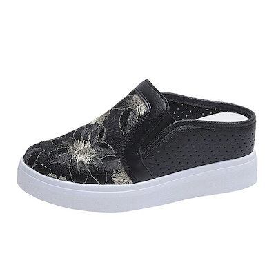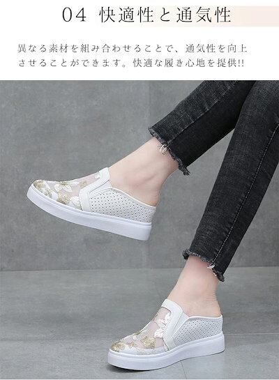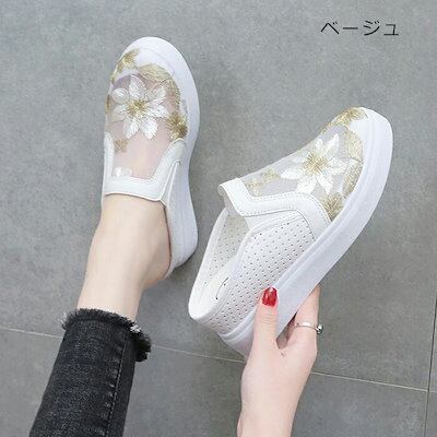 スリッポン 厚底スニーカー 4cm up かかとなし メッシュ スリッパ レディース 刺繍 厚底 サマースニーカー スポサン インヒール サンダル レースアップ 履きやすい 婦人靴 美脚 軽量 歩き