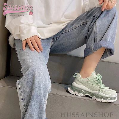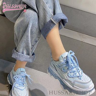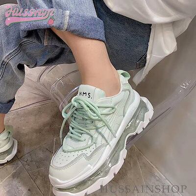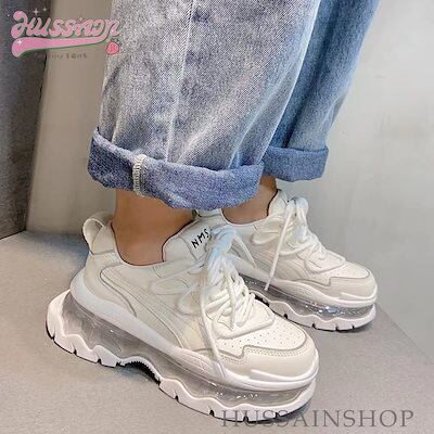 可愛い ゆったり ボリュームソール スニーカー 足首ほっそり 厚底 シューズ 脚長効果 美脚見え 学生 通学 シンプル カジュアル 涼しげ スタイルアップ kawaii 靴 白