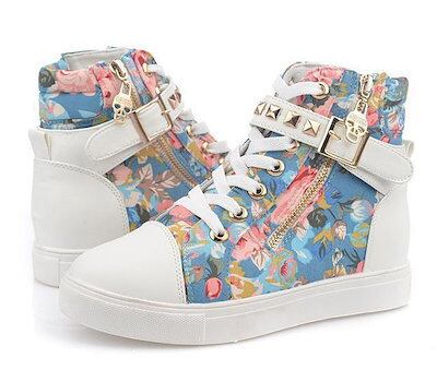 新品追加スニーカー レディース ズック シューズ ヒール 厚底 花柄 可愛い キュート カジュアル