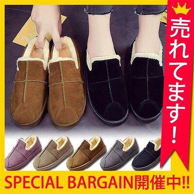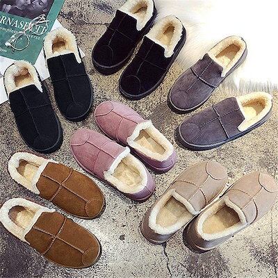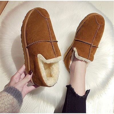 スリッポン靴 レディース スニーカー ボア 秋冬 防寒 スエード調 厚底 ファーリボン スリッポン