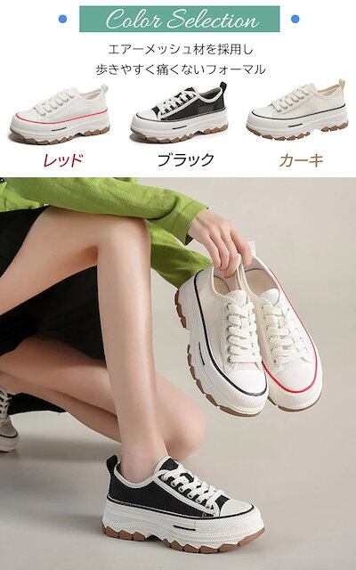 疲れない 厚底 スニーカー レディース 5.5cm ヒール 夏 厚底スニーカー シューズ 厚底 カーキ 黒 メッシュ 通気性 キャンバス スニーカー インヒール 美脚 履きやすい シューズ シンプル