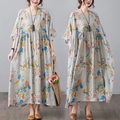 送 料 無 料!韓国ファッション ワイドサイズ マキシ丈 ロングワンピース 大きいサイズ レディース