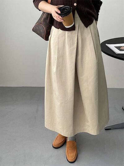 ロングスカート レディース ハイウエスト ボトムス フレア 綿100% コットン シンプル マキシ丈 Aライン タック 無地 秋 冬 春 フレアスカート カジュアル きれいめ 上品 コットンスカート