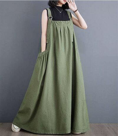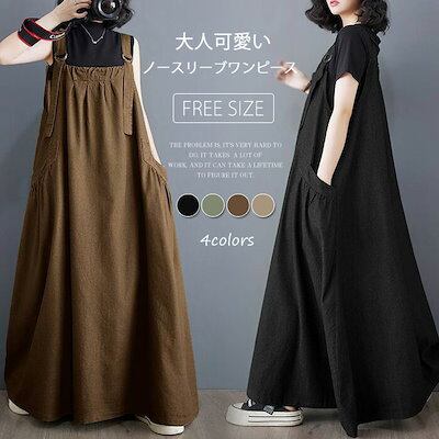 サロペットスカート レディース ジャンパースカート ワンピース オールインワン 無地 ノースリーブ 夏 春 秋 フレア Aライン ポケット ロング丈 マキシ丈 カジュアル 着痩せ 上品 ゆ