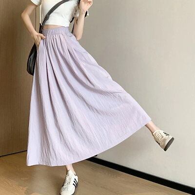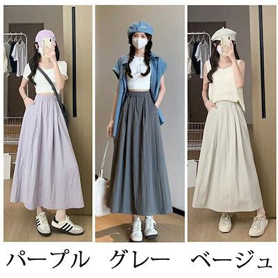 スカート らくちん ふんわり軽く 涼しげ レディース きれいめ 5色 ウェストゴム 体型カバー ボトムス ロングスカート コットン ゆったり マキシ丈 ギャザースカート サーキュラースカート フレア