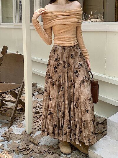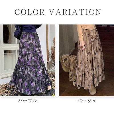 プリーツスカート 花柄スカート ロングスカート マキシ丈スカート 春 レディース スカート 花柄 ボトムス フレア ハイウエスト ウエストゴム 高見え ゆったり おしゃれ ガーリー キレイ