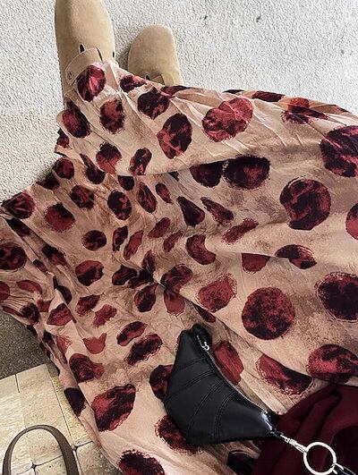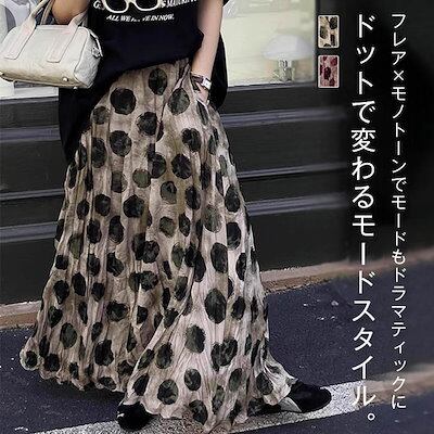 フレアスカート スカート レディース ボトムス ロング ドット柄 柄スカート フレア ボリューム ロングスカート マキシ丈 ビッグ ドットスカート 個性的 モード レトロ ニュア 上品