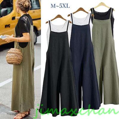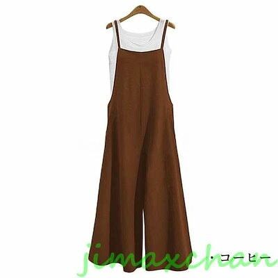 新品 サロペット 40代 レディース オールインワン 体型カバー シンプル ナチュラルカラー 大きいサイズ 綿麻 無地 マキシ丈 薄手 ワイドパンツ