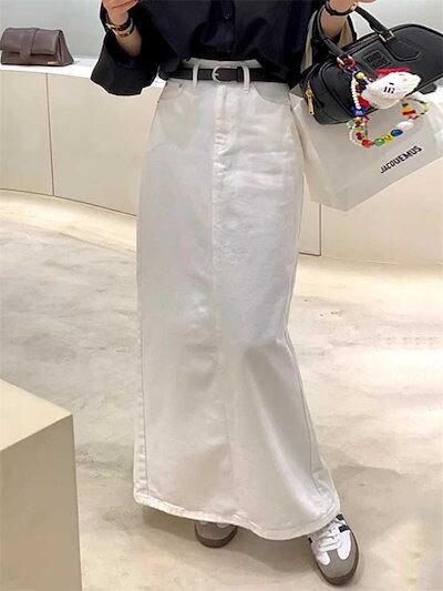 デニムスカート ロング スカート レディース ボトムス 綿混 ロングスカート マキシ丈 バックスリット スリット Iライン タイト ハイウエスト ゆったり 動きやすい 大人 おしゃれ 春 夏 秋 カ