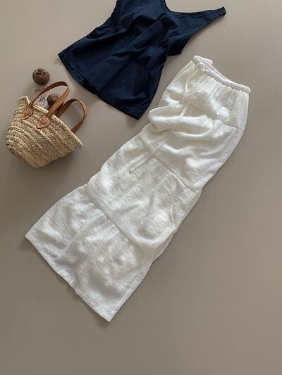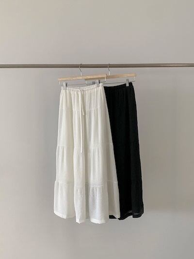 moment【即納】ドーブ ティアード マキシスカート/アイボリー・ブラック くしゅレーヨン混×Aライン